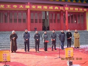 12月25日,安吉县章村镇龙王寺大雄宝殿举行落成典礼仪式,安吉县人大常委会副主任王爱民,县政协副主席、统战部长侯献荣出席活动。集团公司董事长王仲元作为施工单位领导受邀参加。 据了解,龙王寺始建于唐中期,距今已有1200多年;随着经济社会发展和人民生活水平的提高,复建龙王寺被提上日程。集团公司施工的该寺的建成不仅为广大佛教信众提供了宗教文化场所,也为安吉章村美丽乡村和风情小镇建设增添了一道特色风景。