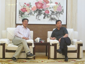 9月30日,新疆建设兵团农七师李春华常务副市长(右)来我集团公司考察,与王仲元董事长亲切交流。