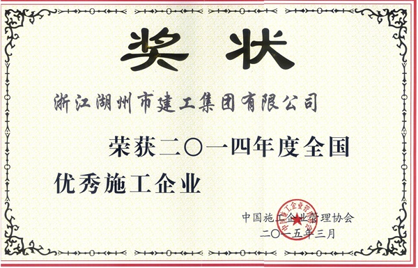 2015年4月23日,中国施工企业管理协会召开了第七届会员代表大会暨第30次年会,会上对获得2014年度全国优秀施工企业等荣誉的企业进行了表彰,湖州建工以工程质量为抓手,坚持创优争先;以扬尘治理为突破,倡导绿色施工;以文化建设为引领,构建和谐企业;成为湖州地区唯一一家获此殊荣的施工企业。这是自2011年度集团公司获得该荣誉后,再次荣膺。 这是企业的荣誉,更是企业的动力。集团公司上下将再接再厉,加快技术创新、转型升级,全面提升企业的核心竞争力,再创佳绩。