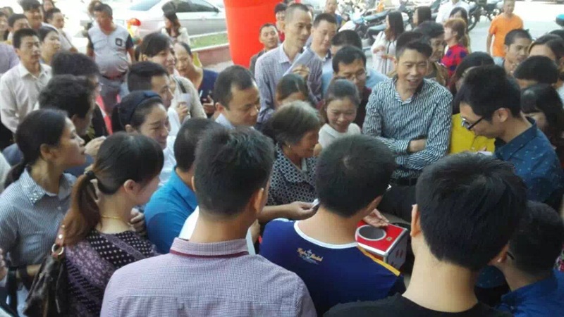 开盘当天,建开公司双林镇售楼部现场喜庆红火。火红的地毯,火红的气拱门,火红的气球在宜人的风中微微飘扬。工作人员个个面带喜色,前来购房的人群也显得格外激动,有的在研究模型,有的在询问,有的在交钱,有的在排队开票,人头攒动。上午11点整,摸奖开始了,第二位摸奖的是一早就来交钱的大妈,只见大妈随手往奖票箱里一摸——哇!大奖5000元现金!场面更是一片火爆!