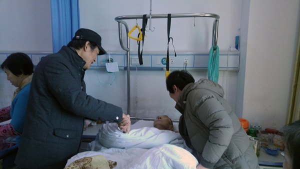 随后,王仲元董事长又来到市中医院46号床,看望生病住院的孔宪高同志,孔选高前年11月份生病,糖尿病并发症病情严重。王仲元详细询问家中的生活、收入、社保等情况,勉励一家人保持乐观心态、树立生活信心,积极面对眼前的困难,并祝福他们过上快快乐乐的春节。当得知谭顺麟同志也在该病区50号床与老伴一同在住院,王仲元立即赶到病房,叮嘱谭老安心养病,鼓励陪护谭老的子女要放宽心,在照顾好谭老的同时自己保重身体、注意休息,向他们一家致以春节美好的问候。