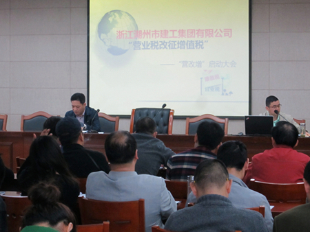 4月13日,集团财务公司派出四名财务主管专赴杭州参加由省建筑业行业协会举办、为期两天的建筑业企业“营改增”政策及企业应对准备宣贯培训班授课;4月13日,集团公司又安排高层领导3人、基层经理及经营部负责人7人、财务科长5人共15人组成的学习团队,参加由市建设培训中心在湖州大剧院举办的“营改增”专题讲座;4月18日,集团公司召开董事会,学习研究“营改增”事宜;4月20日,集团公司下文成立“营改增”领导小组;4月25日,集团公司召开各相关职能部门负责人“营改增”工作协调会议;4月26日,集团公司召开“营改增”工作培训会,机关各部室负责人、财务公司全体,基层公司经理、项目经理以及材料员60余人参加了会议,集团公司常务副总裁、营改增副组长叶坤林主次会议,会上财务公司经理、营改增副组长温建平用了一个多小时详细讲解了营改增的影响和集团各级需要避免的误区和应采取的应对措施;4月28日晚,集团公司邀请市国税局直属分局专职税务人员宣讲“营改增”企业贯彻落实工作,集团公司董事长王仲元,“营改增”领导小组成员,机关各部(室)负责人,各基层公司经理、书记(副书记)、副经理,全体项目经理,全体财务人员,全体经营、造价人员,全体材料员近100人放弃休息时间,参加了聆听营改增背景介绍、营改增的几个税收概念、建筑行业的特殊税务事项规定、营改增对建筑业的影响、企业的应对准备五个方面内容;4月29日,集团公司造价从业人员13人参加了由市建设工程造价管理协会组织的湖州市建筑业“营改增”工程造价政策宣贯培训会……