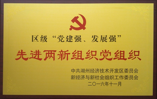 2016年11月,集团公司党委被中共湖州经济技术区委员会新经济新社会组织工作委员会评为区级“党建强、发展强”先进两新组织党组织。