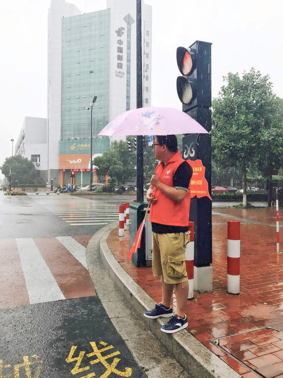 从6月1日起,争创全国文明城市 平安志愿者在行动——警务共同体单位助力“一创一治”活动在湖城拉开序幕,平安志愿者在湖州中心城区55个路口开展文明交通劝导活动,参与“创文明城市 治交通乱象”整治行动。集团公司团委积极组织团员青年参与这一活动,图为6月12日公司员工章楠在雨中维护凤凰路与龙溪路路口交通秩序。