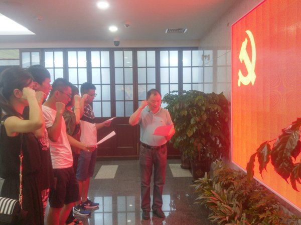 7月8日,集团党委组织三名新党员和团委委员赴上海中共一大会址进行新党员入党宣誓和重温入党誓词活动。“我志愿加入中国共产党,拥护党的纲领,遵守党的章程,履行党员义务,执行党的决定,严守党的纪律,保守党的秘密,对党忠诚,积极工作,为共产主义奋斗终身,随时准备为党和人民牺牲一切,永不叛党。”面对鲜红的党旗,新党员高举右拳,庄严地对党许下誓言。集团公司党委副书记王宇清勉励新党员要牢记党的宗旨,明确党员权力,履行党员义务,时时处处以一名合格党员的标准严格要求自己,不断开拓创新,积极进取,努力提升自身政治、文化素质,在不同的岗位上,充分发挥党员的先锋模范作用,以优异的成绩喜迎党的“十九”大胜利召开。