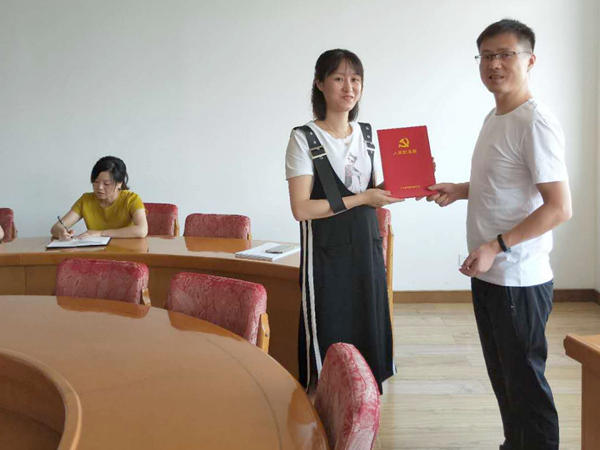 7月12日,财务公司支部召开党员大会,讨论表决通过吸收沈辉丽同志为中共预备党员。支部委员孙小华代表支部向沈辉丽赠送了入党纪念册,希望她不忘初心,牢记誓词,永葆共产党员先进本色。集团公司今年7月总共又有3名同志光荣入党。