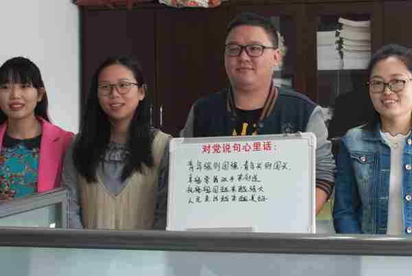 10月20日,聆听了十九大开幕式习总书记的报告后,集团公司的员工心潮澎湃,用笔说出掏心窝子的话。退休职工林师傅如今在公司的传达室继续发挥余热,他的儿子也是公司的员工,这对“父子兵”写下“国富、企兴、家旺”的美好期盼;财务公司女职工居多,这些“娘子军”们抒发了“汇聚青春力量,共创湖建未来”的豪情壮志;成本部的青年团员则吹响“青年强则国强,青年兴则国兴,幸福要靠双手来创造,祝福祖国越来越强大,人民生活越来越美好!”的冲锋号;工程质量、安全管理员被誉为施工“守门神”,他们立下“造安心安居房,建美丽新湖州”的誓言……笔墨凝结真情意,一句句期盼打动人心,一声声祝福朴实无华,一份份自信洋溢心间,在党的带领下,敞亮新征程的路人民一定会越走越宽广。
